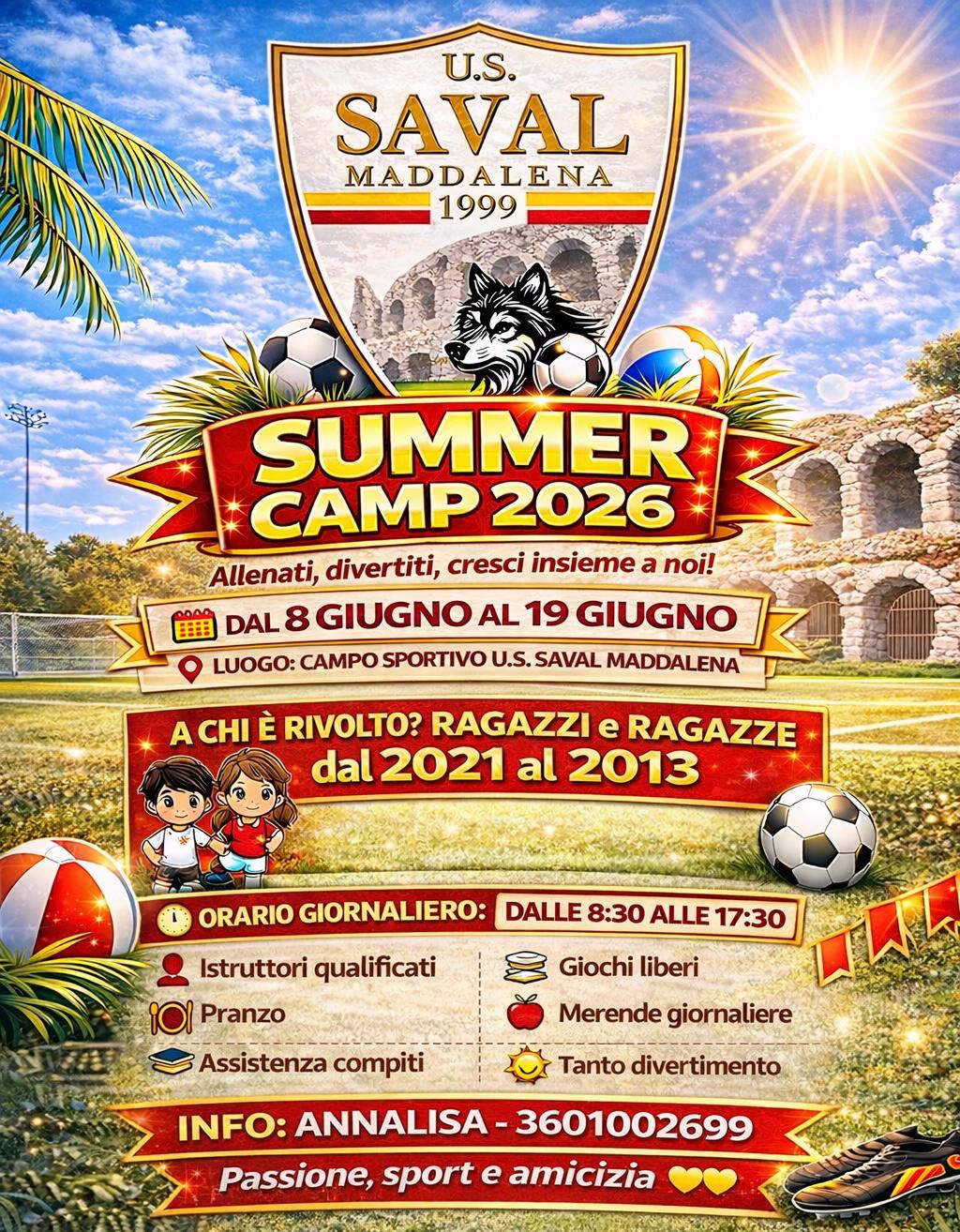 Prepara i tuoi ragazzi a un'estate indimenticabile! I nostri camp estivi offrono molto più di un semplice allenamento calcistico: sono un'opportunità di crescita, amicizia e divertimento puro. Scopri come possiamo rendere le vacanze dei tuoi figli straordinarie.