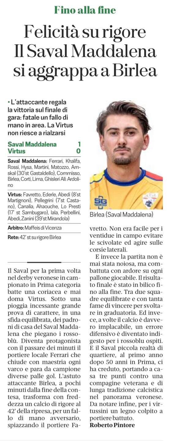 Benvenuti nella sezione dedicata alle cronache delle partite della PRIMA SQUADRA. Qui troverete il resoconto settimanale esclusivo delle gare della nostra prima squadra. Ogni match prende vita attraverso le nostre parole, portandovi direttamente sul campo per rivivere ogni emozione, scoprire il risultato finale e consultare la classifica aggiornata. Il nostro impegno è offrirvi una narrazione avvincente e completa di ogni incontro. Forza Saval!